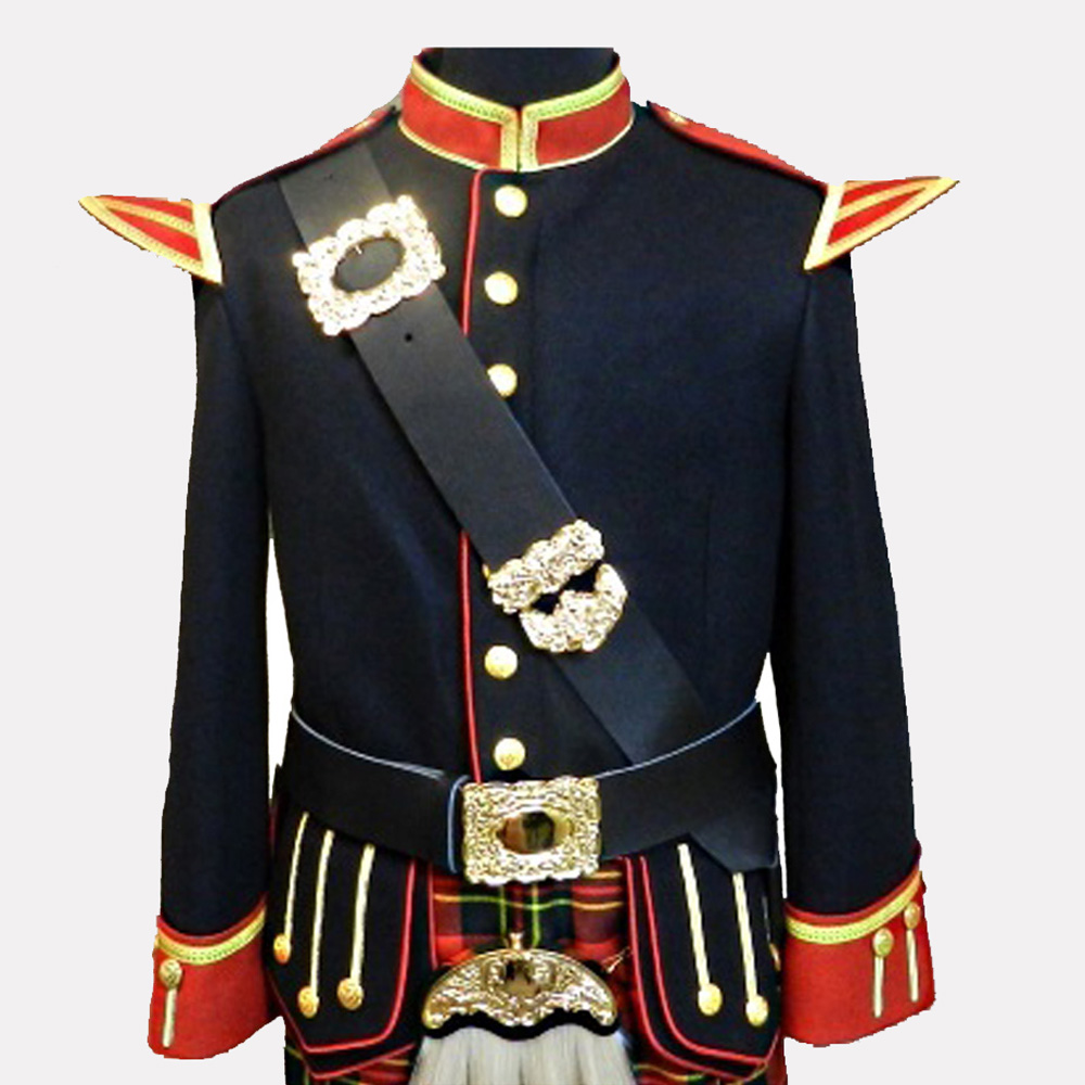Bagpiper Jacket is made of Black Melton Wool that has red cuffs, epaulets, shells, and neck. Its front and flaps also come with red trim. Bagpiper Jacket consists of golden buttons, laces and black satin lining. It is made of quality materials that will give professional look to you in the band. It is suitable for weddings, dinners, balls, parties including office throw parties, church anniversary, graduation, game shows etc.